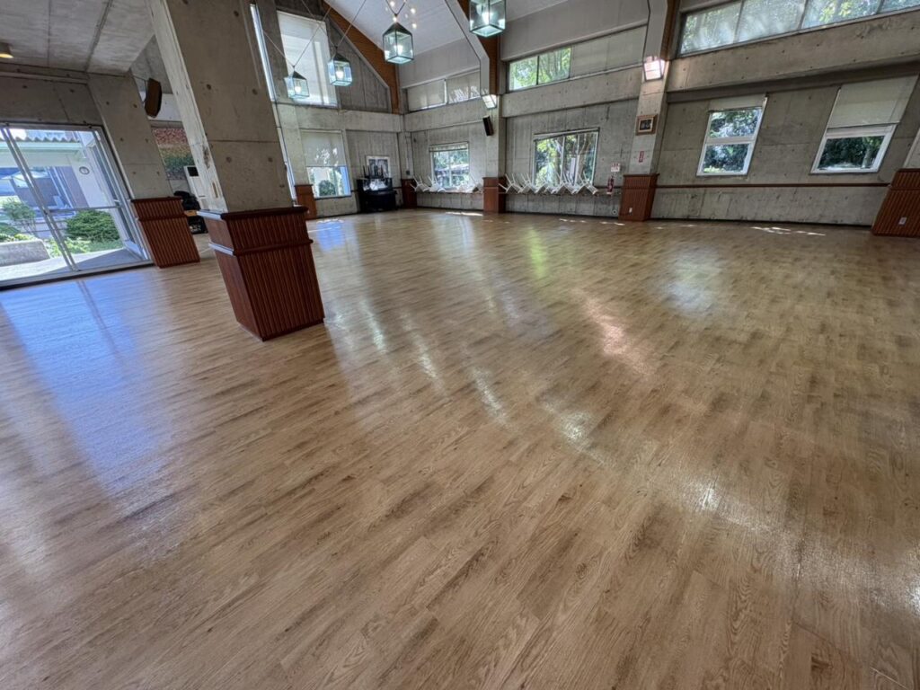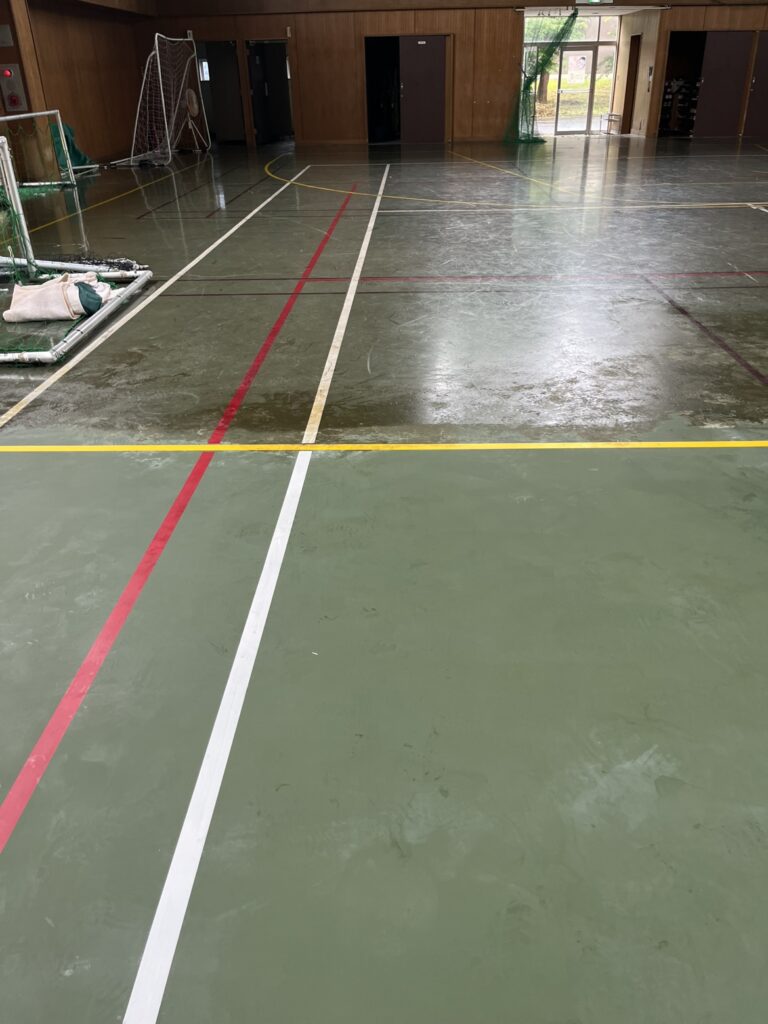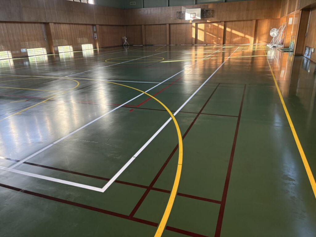 特に体育館は毎日の授業や部活動で使用頻度が高く、どうしてもワックスのツヤが失われやすい場所です。