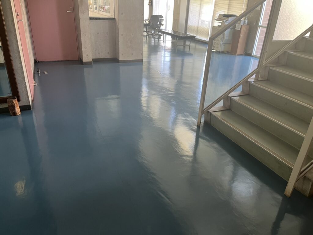 ムラにならないよう、専用モップを使って2層に分けて丁寧に塗布しました。