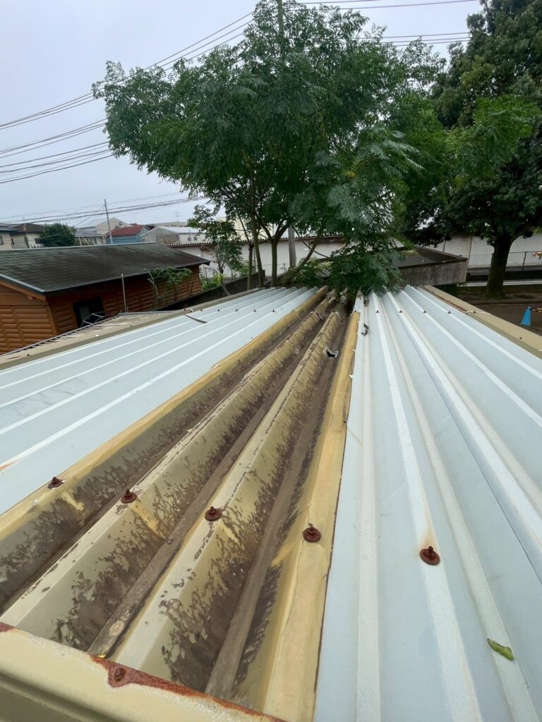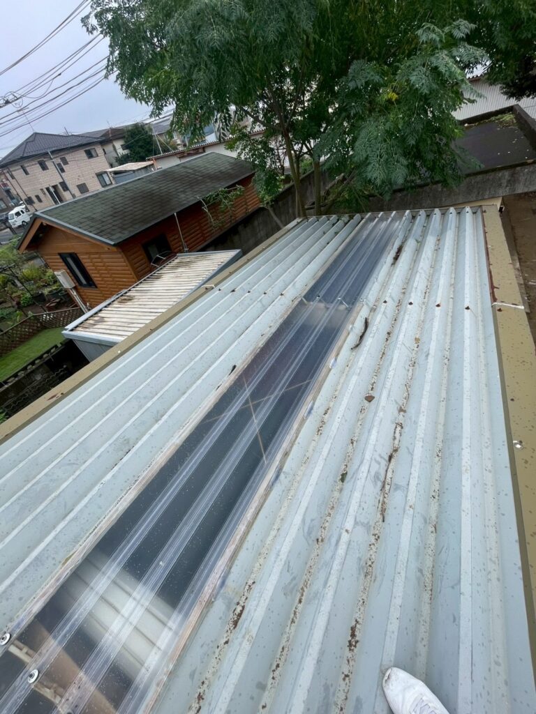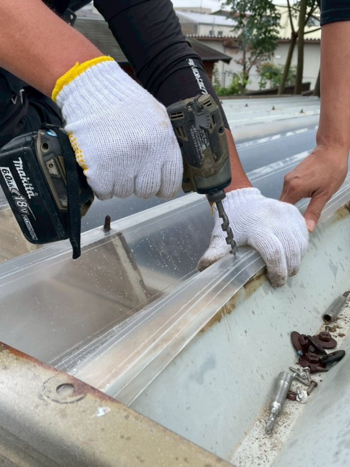 「倉庫全体ではなく、傷みが目立つところだけを交換したい」「できるだけ費用を抑えたい」とのご相談でした。屋根の劣化が進むと雨漏りの原因にもなり、保管物への影響が出るため、早めの対処がとても大切です。