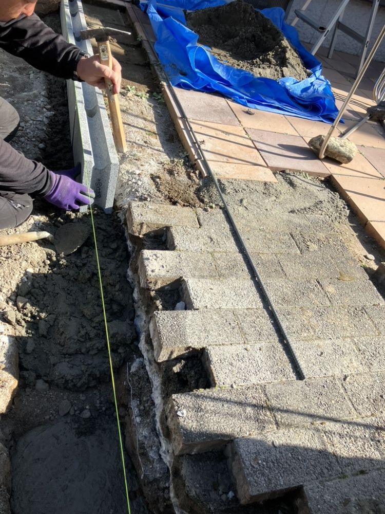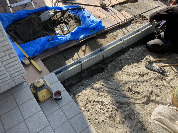 既存のレンガ敷きを撤去した後、地盤の均し作業を行い、高さや勾配を細かく調整しました。カーポート側の土間コンクリートと自然につながるよう、段差や隙間が生じないように施工を進めています。歩きやすさと安全性を考慮しながら仕上げることで、見た目にもすっきりとした土間コンクリートのアプローチが完成しました。