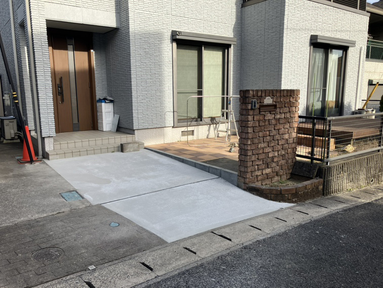 施工後は、カーポートから玄関までスムーズに移動できるようになり、日々の出入りが快適になりました。段差が解消されたことで安全性が向上し、アプローチ全体も広々とした印象に変わっています。雑草の心配も少なくなり、見た目と実用性の両面でご満足いただける仕上がりとなりました。